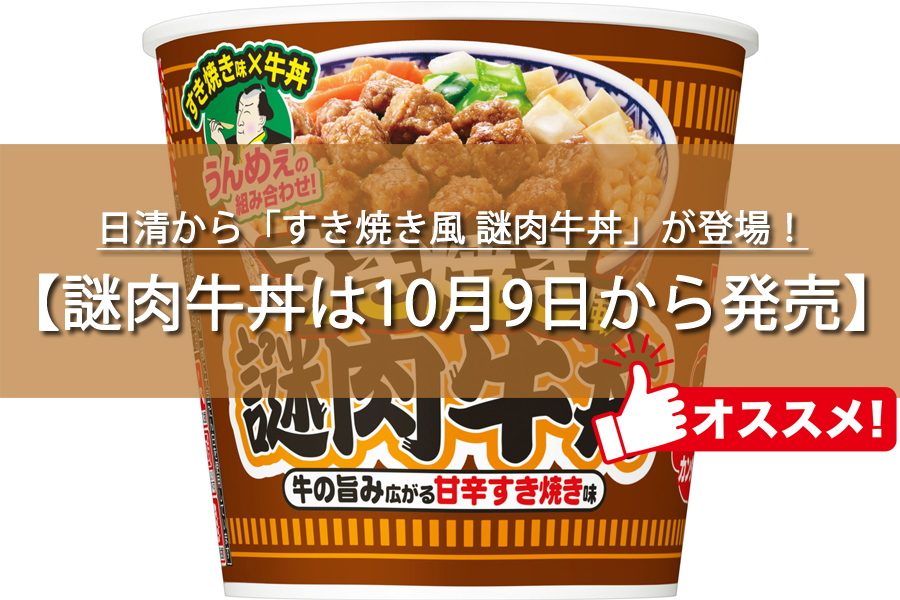 今回は日清の「すき焼き風 謎肉 牛丼」のレビューをご紹介します。