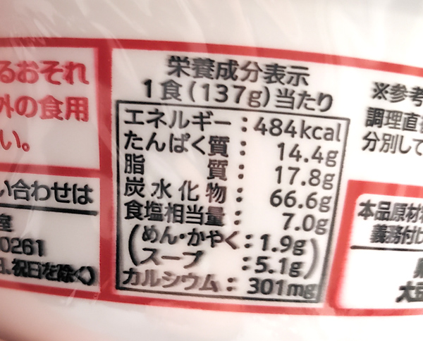 寿がきやのカップラ「辛辛魚」ラーメンの原材料とカロリー