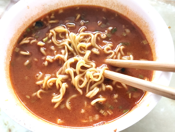 食べてみると、確かに辛いのは辛いですが、過去のラーメン(主にペヤングの獄激辛)みたいに、吹き出すこともなく…