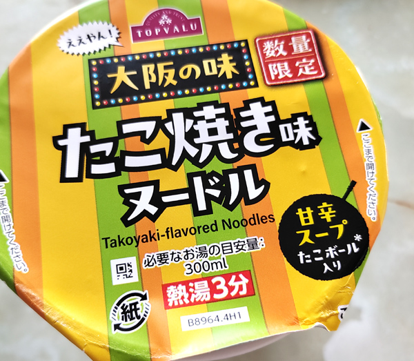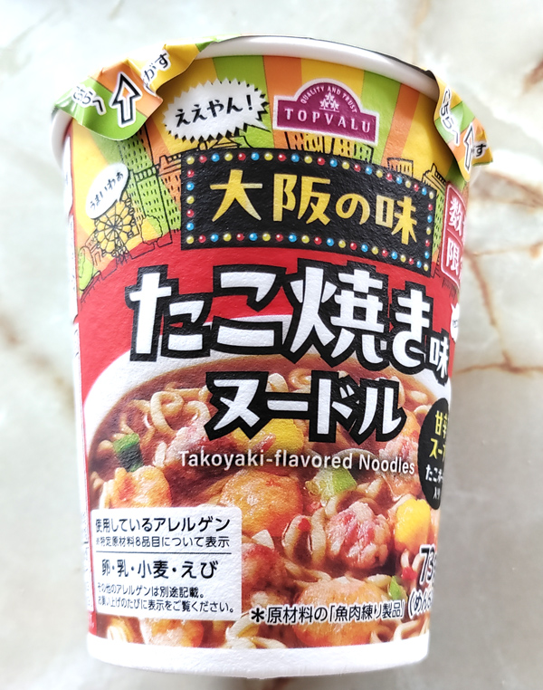 それでは、トップバリューの数量限定商品「たこ焼き味ヌードル」のレビューをご紹介してみました。