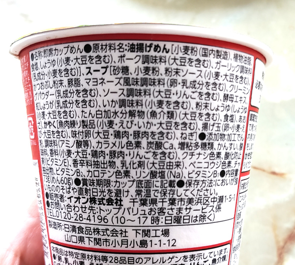 たこ焼き味ヌードルの原材料とカロリー