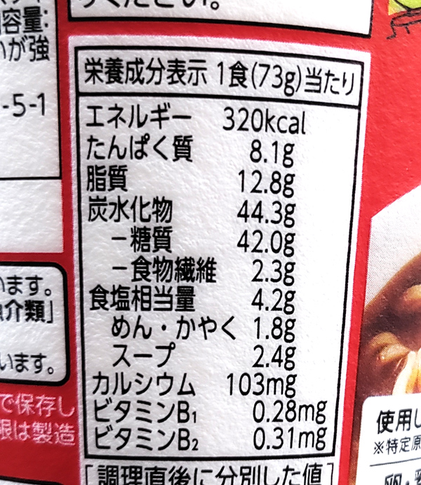 カロリーは、1食(73g)当たり:320Kcalと、割と高め。