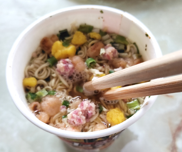 ソースの風味が強く、いか焼きそばにお湯を入れたら、こんな感じなのかな?と思う味。