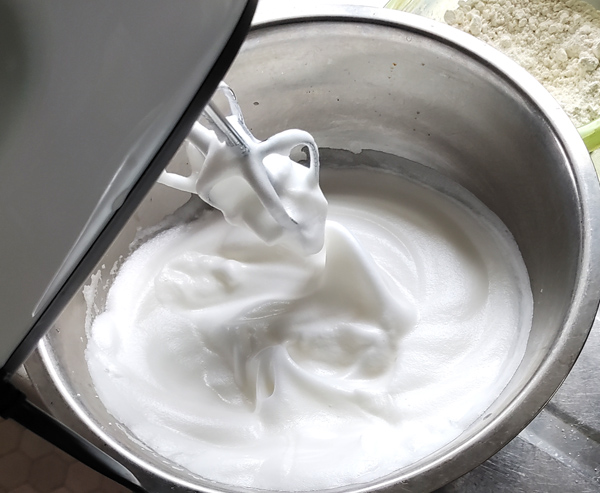 もっと時間をかければ、角がピンと立つメレンゲが作れそうですが、シフォンケーキは揺れる手前が良いので、ここで完了。